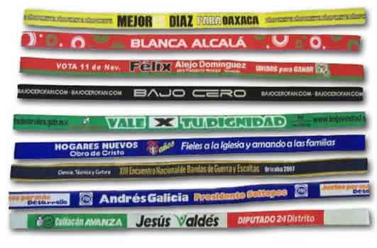 Somos mayoristas de artículos promocionales en México, le presentamos aquí diversas imagenes de artículos promocionales textiles o fabricados en tela, los cuales llevan la impresion en serigrafia o el bordado de su logotipo o publicidad.